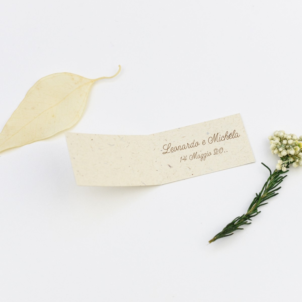 Personalizza il bigliettino con nomi e data per rendere unica ogni bomboniera.
