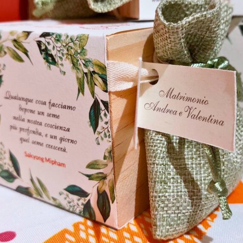 Ideale per matrimoni, battesimi, lauree e comunioni, questa bomboniera solidale combina bellezza e sostenibilità. Ogni confezione contiene 10 cubotti in legno con semi di margherita, per far sbocciare un ricordo colorato e green del tuo giorno speciale.