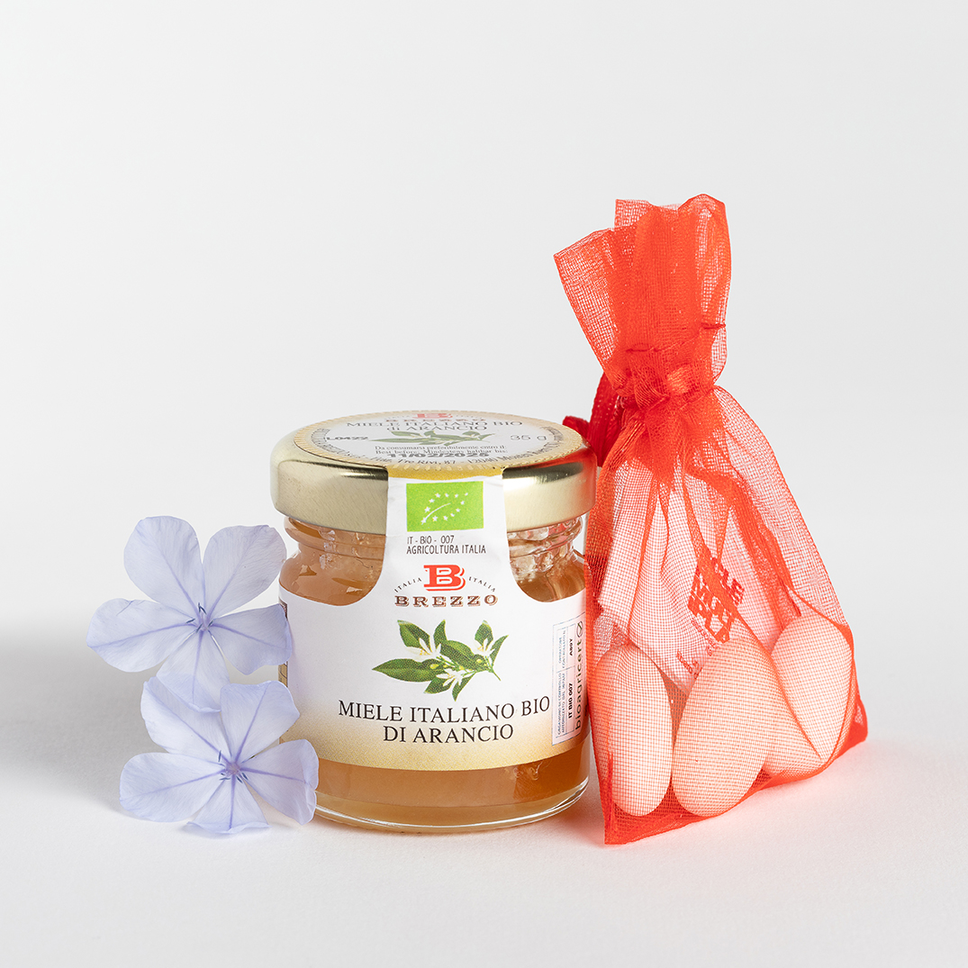 Vuoi dare un tocco speciale al tuo evento? Scegli la nostra Bomboniera Solidale Vasetto di Tris di Miele con il sacchettino porta confetti color rosso.