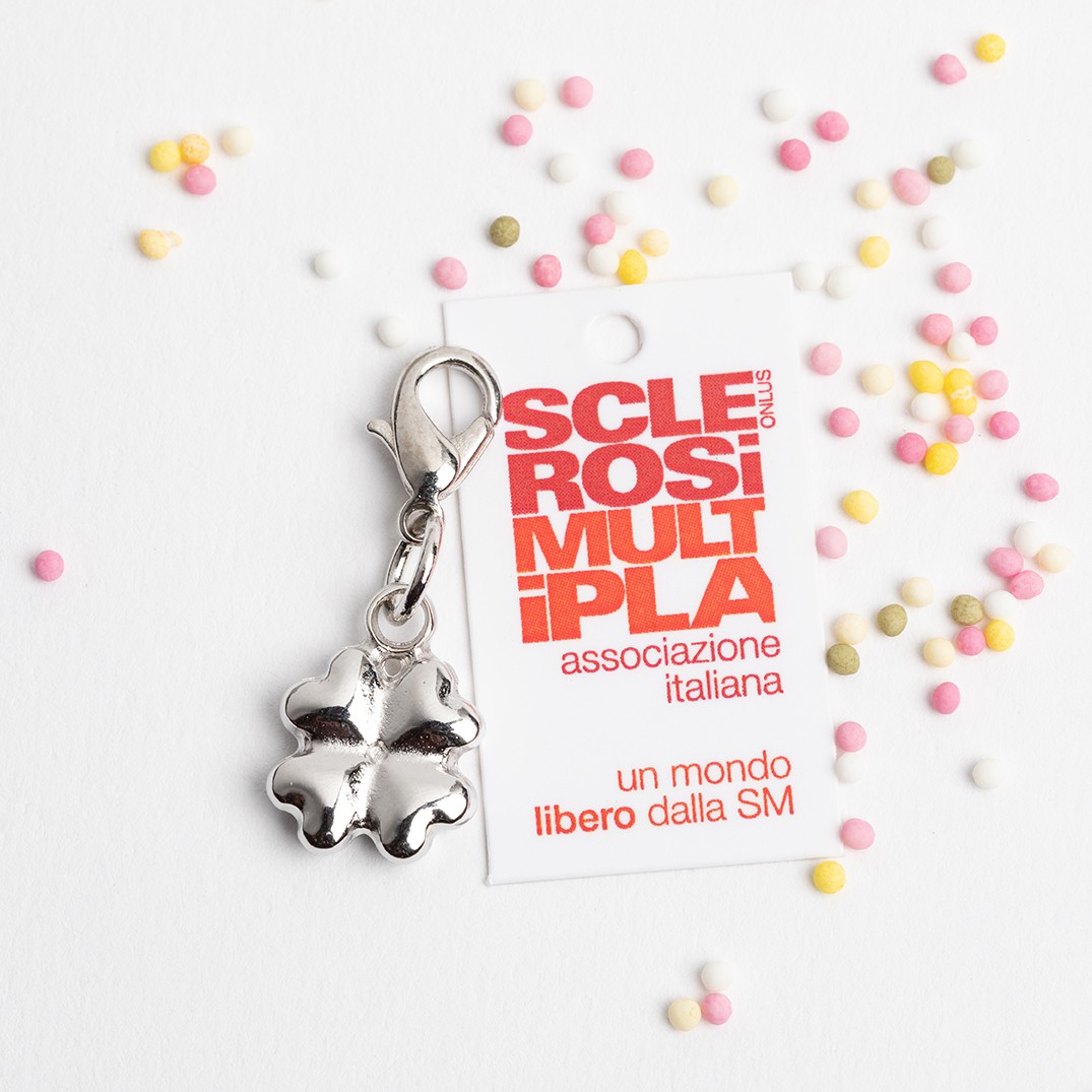 Con l’elegante ciondolo argentato a forma di quadrifoglio arricchisci il tuo giorno speciale e contribuisci a credere in un mondo libero dalla sclerosi multipla.