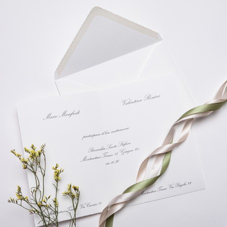 Partecipazione solidale su carta pregiata cotonata colore bianco liscia 250gr. lavorata con taglio sfrangiato sui bordi