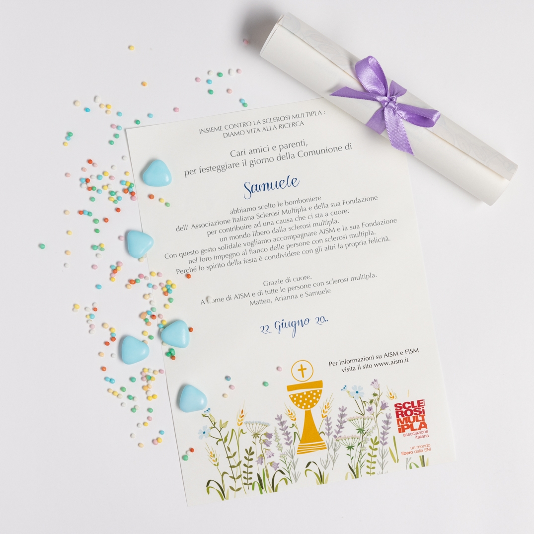 Cerchi un modo speciale per celebrare la Comunione per fare un regalo che vada oltre il semplice oggetto? La Pergamena Solidale Comunione Fantasia è perfetta per chi vuole festeggiare un momento unico, dando allo stesso tempo un contributo concreto alla ricerca sulla sclerosi multipla.