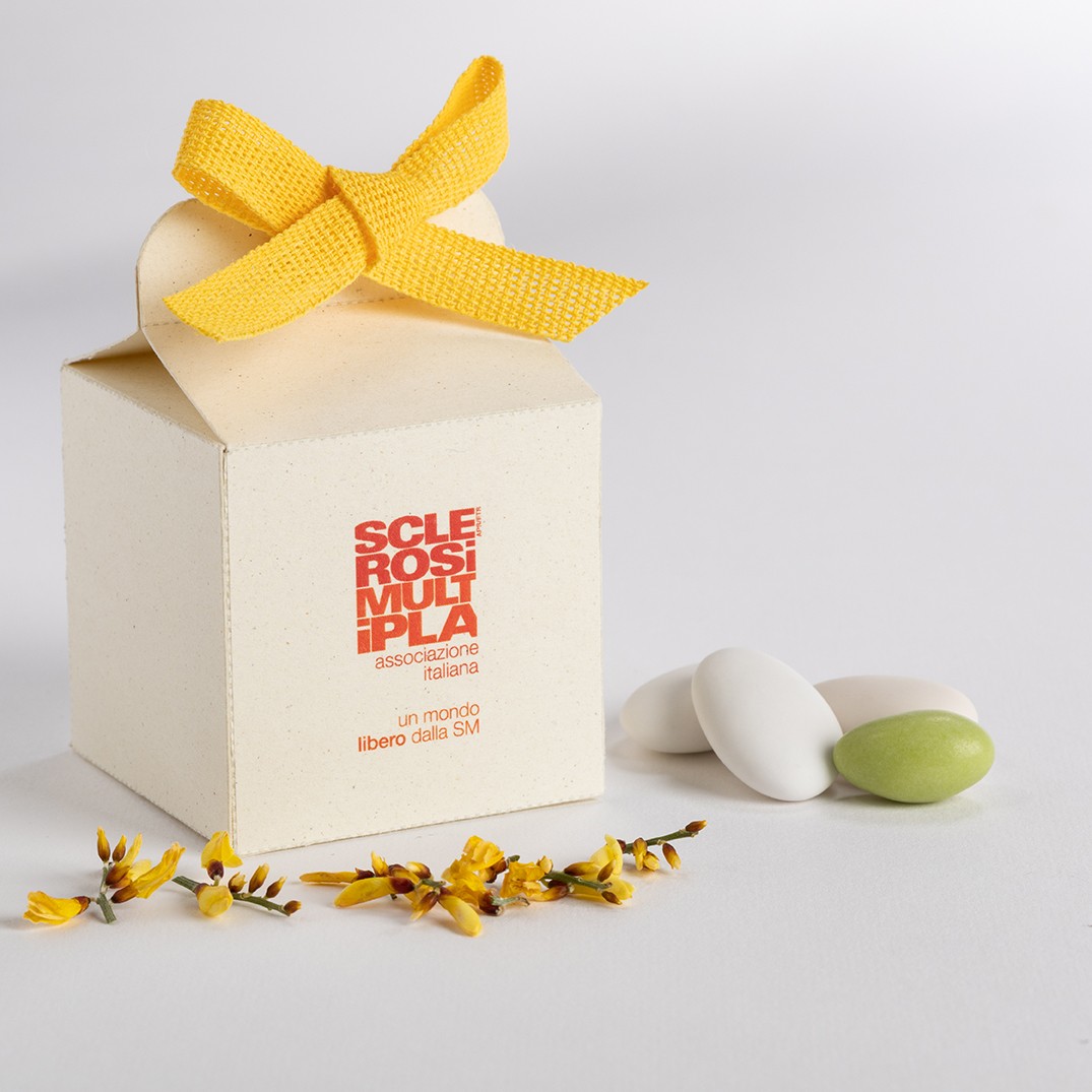 Non perdere l’occasione di fare una scelta elegante e solidale. Ordina ora la tua Scatola Portaconfetti Solidale in Carta Ecosostenibile con Nastrino Giallo e rendi il tuo evento ancora più speciale, sostenendo la ricerca sulla sclerosi multipla!