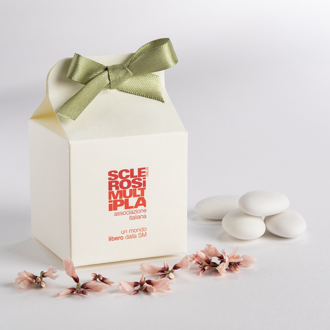 Che sia il matrimonio o il battesimo, la scatolina porta confetti AISM è la soluzione perfetta per festeggiare il tuo giorno importante aiutando l’Associazione Italiana Sclerosi Multipla, che si occupa da più di 50 anni della ricerca sulla sclerosi multipla per trovare un cura definitiva a questa malattia.